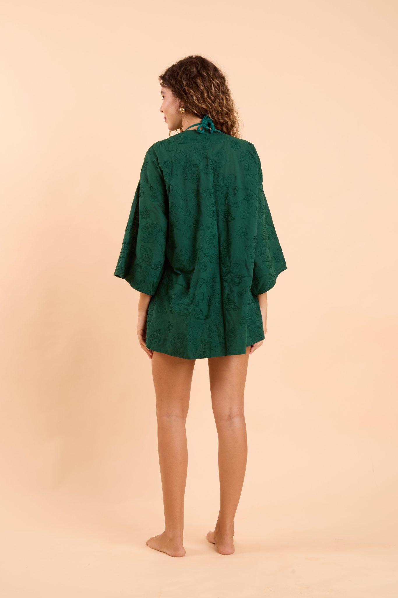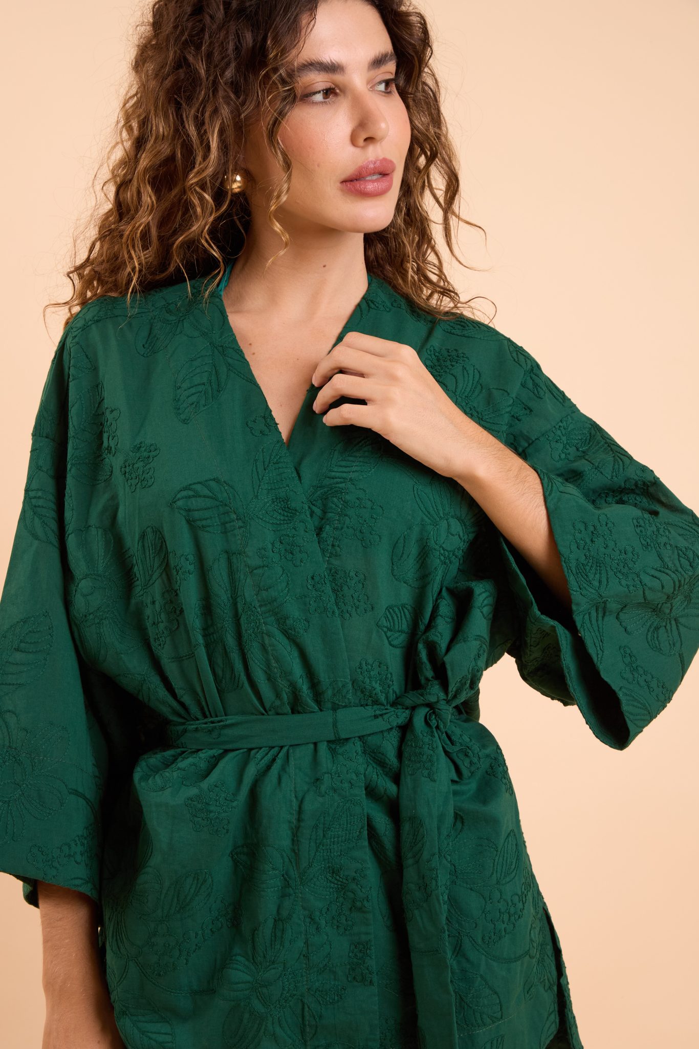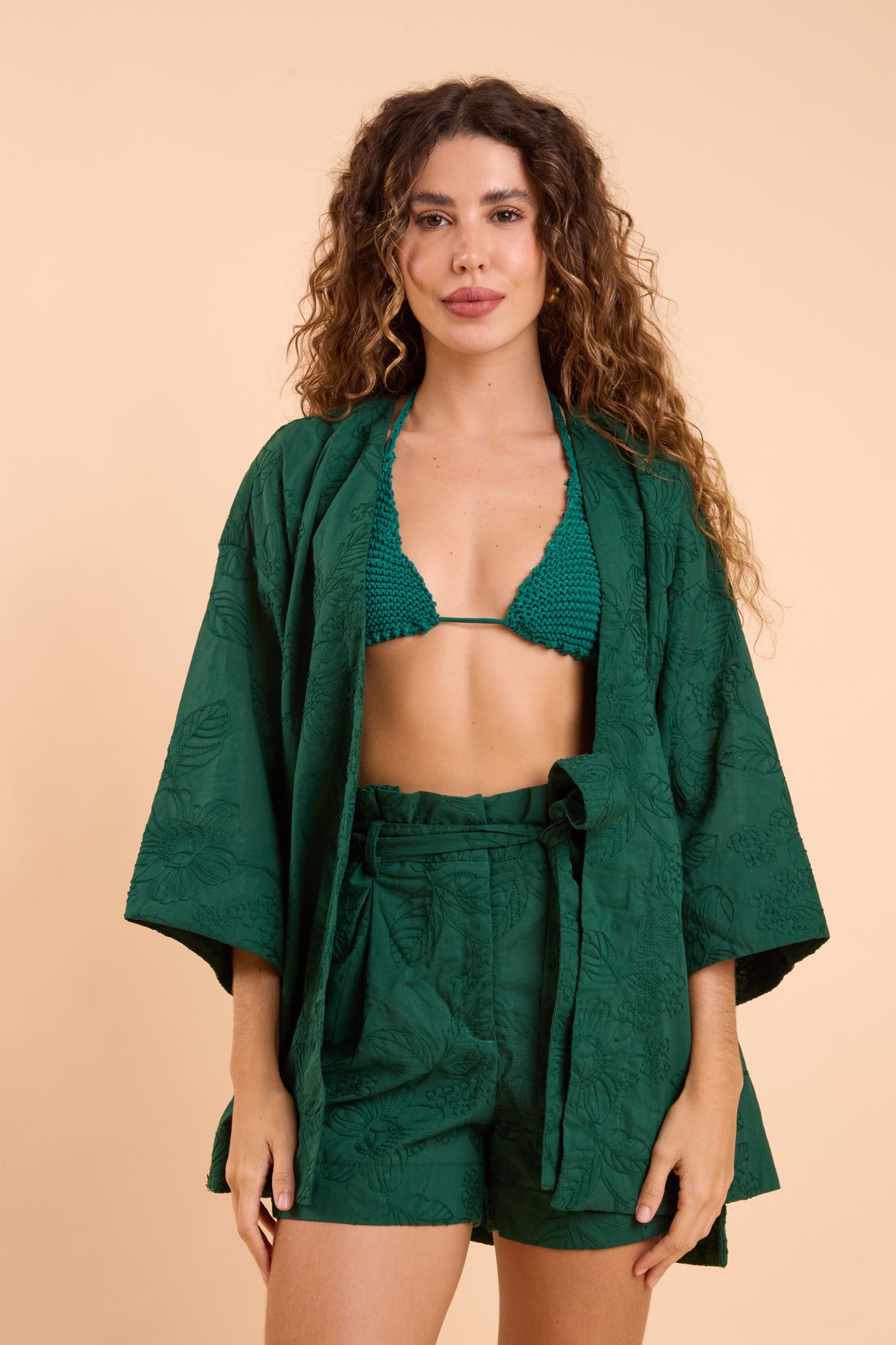Kimono bordado 100% algodão que acompanha faixa para amarração.