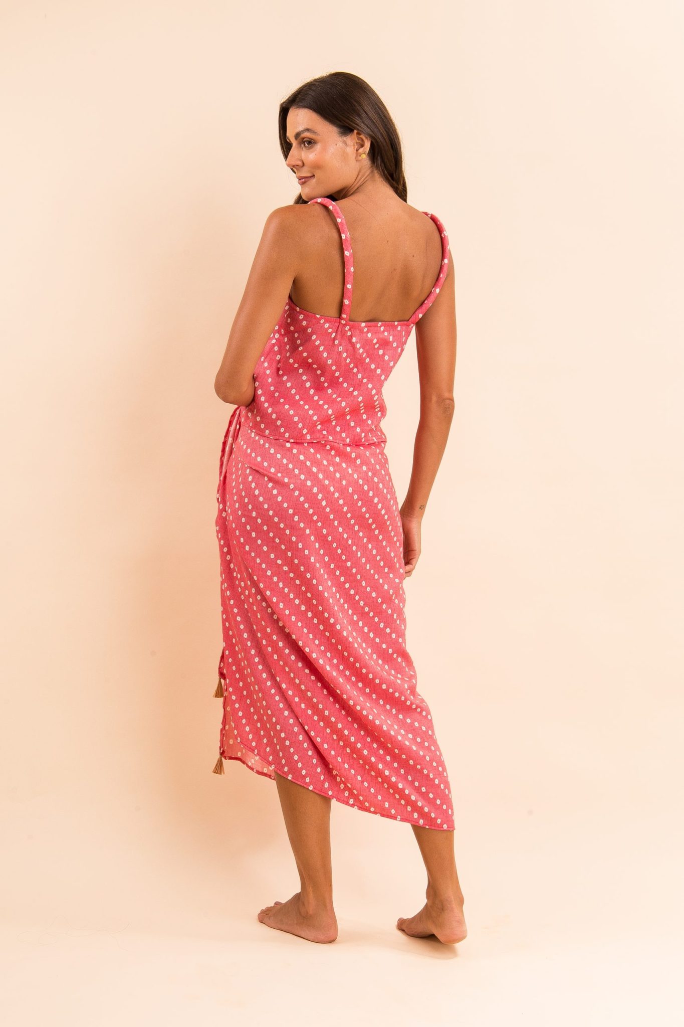 Regata, com alças em rolotês largos.